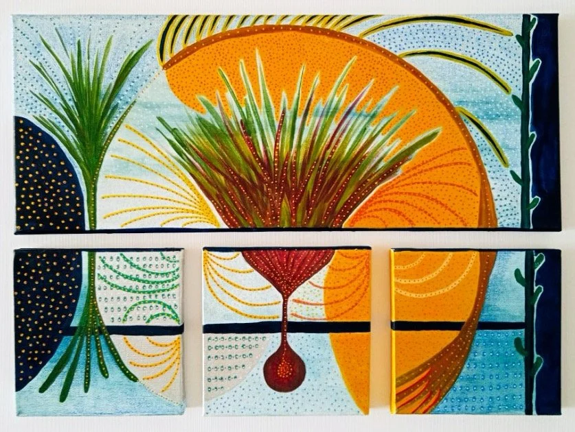 talismans of care and connection, handcrafted in air-dry clay to bring a glimpse of island life into everyday spaces. miniature figures, dots, lines, leaves, birds, and capeverdean homes tell stories of patience, craft, and beauty
